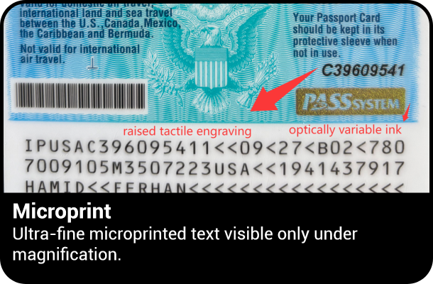 SECURITY FEATURES OF A ID IN THE USA MAY INCLUDE: