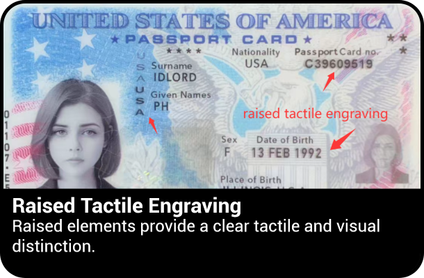 The Passport Card contains an embedded RFID (Radio Frequency Identification) chip, enabling wireless data transmission. This allows border officers to verify the card efficiently without contact, significantly reducing processing time.